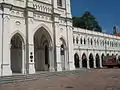 A five-storey spire flanked by flying buttresses marked the entrance to the chapel. The 648 capitals on the columns of the chapel and its corridors each bear a unique impression of tropical flora and birds.