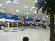 With a total built-up area of 55,742 m2 (600,000 sq ft),[38] the Terminal 1 has 56 check-in counters, 7 aerobridges and conveyor belt system to transfer baggage from 12 flights at a time. It is also equipped with 6 reserve lounges, art area, a food court, executive lounge, and a 4,645-square-metre (50,000 sq ft) shopping area.[38] The terminal has a solar carport facility that can generate 2.4 MW[39] of power and can house 1,400 cars. Together with the solar carport at the international Terminal 3, it can generate 5.1 MW of power which is the largest in a carport in the world.[40]