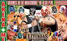 The Mexican wrestling company Consejo Mundial de Lucha Libre (Spanish for "World Wrestling Council"; CMLL) first show under the name Leyendas Mexicanas ("Mexican Legends") in November 2017.[1] The 2018 event became the second year in the row CMLL promoted a show under that name.[2][3] The Leyendas Mexicanas show featured various lucha libre "legends" and celebrates the history of CMLL. As part of their celebration some wrestlers, who had previously been unmasked by losing a Lucha de Apuestas match, were given permission by the Mexico City professional wrestling commission to wear their mask again for one night.[3] The wrestling mask has always held a sacred place in lucha libre, carrying with it a mystique and anonymity beyond what it means to wrestlers elsewhere in the world.[4] The ultimate humiliation a luchador can suffer is to lose a Lucha de Apuestas, or bet match. Following a loss in a Lucha de Apuesta match the masked wrestler would be forced to unmask, state their real name and then would be unable to wear that mask while wrestling anywhere in Mexico.[5]