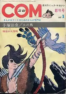 ![]() The inaugural January 1967 issue of COM, featuring Tezuka's Phoenix on the cover | |