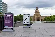 On March 12, 2020, the province restricted all gatherings to a maximum of 250 people, recommended against international travel, and recommended that anyone returning from international travel self-isolate for 14 days on return.[8] The Alberta Court of Queen's Bench postponed all jury trials scheduled to begin after March 13. Jury trials which were already in process, would continue.[9]