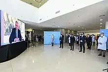 President Fernández tested positive for COVID-19 on 3 April, showing mild symptoms.[111] Fernández had been previously received the full vaccination against the virus earlier on the same year.[112] During the first week of April, there was also an increase in the number of daily confirmed cases, leading to the begin of the second wave of the pandemic in the country.[113] On 8 April, during a visit by United States Southern Command chief Craig S. Faller to the country, the United States announced the donation of three mobile hospitals, oxygen generators, among other supplies for other areas. The United States also donated equipment for training on response to situations of disasters or a pandemic.[114]