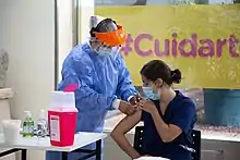 Vaccination against COVID-19 began in Argentina on 29 December 2020 aiming at health professionals.[157] During the first week, 39,599 doses were applied to health professionals.[158]