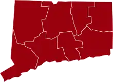 ![]() Map of the outbreak in Connecticut by confirmed new infections per 100,000 people over 14 days (last updated March 2021)