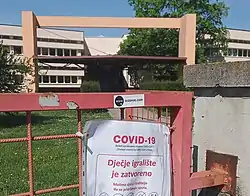 On 17 March, Prime Minister Plenković announced closing shopping centres, some shops, restaurants, cinemas, theatres, reading rooms, libraries, gyms, sports centres, fitness centres, recreation centres, dance schools, children's and other workshops, exhibitions, fairs, nightclubs and discos.[35] The government proposed short-term economic measures, like postponement of tax payments and loans for struggling businesses for at least three months in response to the fallout from the COVID-19 pandemic.[36]