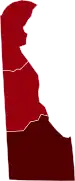 ![]() Map of the outbreak in Delaware by confirmed new infections per 100,000 people over 14 days (last updated March 2021)