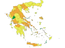 - On 19 March, 46 new cases were confirmed in Greece, bringing the country total to 464, while five more were released from hospitals, bringing the recovered total to 19.[68] A 70-year-old man who had been hospitalised in Kastoria, died, bringing the country death toll to six.[69]
