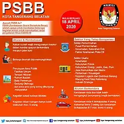 Instead of implementing a nationwide lockdown, the government applied "Large-Scale Social Restrictions" (Indonesian: Pembatasan Sosial Berskala Besar, abbreviated as PSBB), which was later modified into the "Community Activities Restrictions Enforcement" (Indonesian: Pemberlakuan Pembatasan Kegiatan Masyarakat, abbreviated as PPKM).[10] On 30 December 2022, the restrictions were lifted for all regions in Indonesia since satisfied population immunity exceeded the expectation, although it did not lift the pandemic status.[11][12][13]