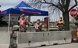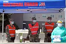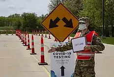 ![]() Drive-through testing site at the Iowa Events Center in Des Moines | |