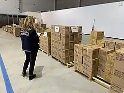 Riots broke out in many penitentiaries throughout Italy after restrictions on conjugal visits were imposed by the government in the 8 March decree.[145] Nine prisoners died in Modena and three in Rieti,[146][147] while 76 detainees escaped from Foggia's penitentiary.[148][149][150] Two prison agents were assaulted and kidnapped in Pavia.[151] On 9 March in Bologna, detainees took control of the Dozza penitentiary, forcing personnel to exit the building.[152] On 11 March, two prisoners were found dead in Bologna's penitentiary.[153] In total, fourteen prisoners died in the whole country.[154]