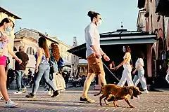 Starting from July 2020, many countries in Europe, including Italy, witnessed a new rise in detected COVID-19 cases.[187][188] On 7 October, the Parliament postponed the end of the state of emergency to 31 January 2021, and Prime Minister Conte imposed the use of protection mask outdoors.[189] On 13 October 2020, the Italian government reintroduced stricter rules to limit the spread of COVID-19.[190] Demonstrations and gatherings of people were strictly forbidden.[191] Regions and municipalities were given the power to only tighten, but not release, containment measures.[192]
