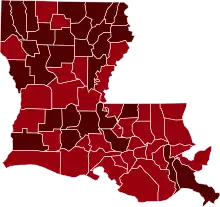 The first presumptive case relating to the COVID-19 pandemic in Louisiana was announced on March 9, 2020. Since the first confirmed case, the outbreak grew particularly fast relative to other states and countries. As of September 29, 2022, there have been 1,454,828 cumulative COVID-19 cases and 18,058 deaths.[1] Confirmed cases have appeared in all 64 parishes, though the New Orleans metro area alone has seen the majority of positive tests and deaths.[1] Governor John Bel Edwards closed schools statewide on March 16, 2020, restricted most businesses to takeout and delivery only, postponed presidential primaries, and placed limitations on large gatherings.[2][3] On March 23, Edwards enacted a statewide stay-at-home order to encourage social distancing, and President Donald Trump issued a major disaster declaration, the fourth state to receive one.[2][4]
