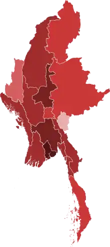 ![]() Myanmar provinces by number of COVID-19 cases (as of 24 December 2020)