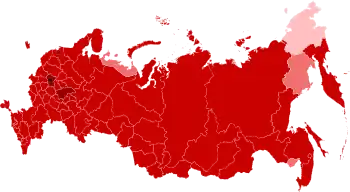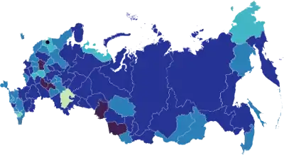 On 1 April, the "self-isolation regime" was announced in the disputed territory of Crimea and Sevastopol,[108] the republic of North Ossetia–Alania,[109] Kamchatka[110] and Khabarovsk[111] krais, Ivanovo[112] and Orenburg[113] oblasts. On 2 April, the measures were announced in Amur Oblast (for those over 65), Tyumen Oblast,[114] and Chukotka Autonomous Okrug.[115] On 3 April, the measures were announced in Oryol Oblast[116] and Tula Oblast (for those over 65).[117]