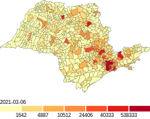![]() Municipalities in the state of São Paulo with case numbers per 100,000 inhabitants | |