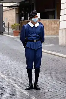 The COVID-19 pandemic in Vatican City was a part of the ongoing worldwide pandemic of coronavirus disease 2019 (COVID-19) caused by severe acute respiratory syndrome coronavirus 2 (SARS-CoV-2). The Holy See reported the first case of infection in Vatican City on 7 March 2020.[2] Unlike other jurisdictions that report cases within a given territory or cases of residents or citizens of a territory, the Holy See reports on cases "in Vatican City State and among the employees of the Holy See" regardless of location of testing, treatment, or residence.[3] There were 29 confirmed cases of COVID-19 among the Vatican's residents and employees; there were no associated deaths.[4] The 29 cases included 10 employees, 1 new hire, and 1 resident of Vatican City.[note 1] All those infected tested negative by 6 June 2020.[5] An outbreak among members of the Holy See's Swiss Guard was reported in mid-October, totaling 11 as of October 15.[6]