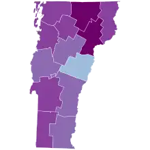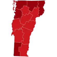 ![]() Map of the outbreak in Vermont by confirmed total infections per 100,000 people (last updated March 2021)