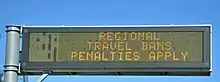 ![]() Traffic sign in Perth advising of regional travel bans, May 2020 | |