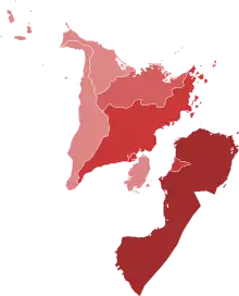 Western Visayas confirmed its first case on March 20. The case was that of a 56-year-old man in Bacolod who has a history of travelling to the United Kingdom and Metro Manila. The man arrived in Negros Occidental on February 29 and has fully recovered by March 31.[1] The first recorded death in the region that of a 62-year-old female in Bacolod occurred on March 31. The following day, cases of local transmission was confirmed in Bacolod and the municipalities of Guimbal and Lambunao in Iloilo province.[2]