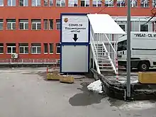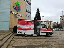 As of 18 February 2021, 5 vaccination sites were available at Pirogov Hospital in the capital, with the medical facility also being in a position to provide 2 additional mobile units.[192] The total number of vaccination points for the whole country had reached 352 by 23 February 2021.[193] The first 24-hour vaccination center in the country began operating in Sofia on 21 February 2021, just outside the University Hospital St. Ivan Rilski,[194] followed by one in Plovdiv on 23 February.[195] Mobile vaccination points were positioned at the entrances of a few national parks in Sofia on 29 and 30 May 2021, allowing all willing Bulgarians to receive vaccines,[196] with the practice continuing in Sofia and other cities in the next month.[197] The Regional Health Inspectorate of Plovdiv established open air vaccination sites in the Stolipinovo district from 12 June 2021.[198][199] Between 8 and 13 June 2021, vaccinations were offered in a number of Varna's shopping malls.[200] A mobile vaccination point inside a bus that is able to accommodate two people at the same time began doing the rounds in Sofia on 16 June 2021.[201] On 19 and 20 June 2021, some of the malls in the capital city hosted mobile vaccination sites,[202] with this practice resuming during the next weekend.[203]
