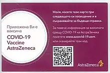 On 29 January 2021, Oxford–AstraZeneca vaccine received conditional authorization by the European Commission, paving the way for its use in EU countries.[118] On the same date, Kostadin Angelov stated in an interview with Boyko Vasilev during the TV show Panorama that Bulgaria will wait for the results of further studies regarding its effectiveness when it comes to people over the age of 65 before administering it to members of this age group.[112] On 4 February 2021, Angelov clarified that there is no medical prohibition to give the vaccine to elderly people and that an additional statement will be made before Oxford-AstraZeneca begins to be administered.[119] The government eventually concluded that the vaccine is useful for elderly citizens as well and did not exclude them from receiving it.[120][121] The first batch of this vaccine reached Bulgaria on 6 February 2021.[122]