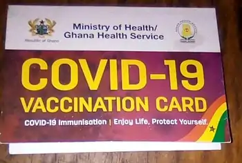 According to the Ghana Health Service, the COVID-19 vaccine would be free of charge for Ghanaians.[14] Dr. Franklin Asiedu-Bekoe, Director of Public Health at GHS, pregnant women and children below 16 years were exempted from the first phase of the vaccination exercise.[15] The recipients of the first phase of the vaccination exercise which was to begin on 1 March 2021; were "health workers, adults 60 years and over, people with underlying health conditions, frontline Executive, Legislature, Judiciary and their related staff, frontline security personnel, some religious leaders and other personalities".[16]