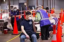 Efforts have been made by private businesses to help encourage vaccination, including ridesharing services offering free transport to vaccine clinic sites, and promotional incentives and discounts being offered to those who present proof of a recent vaccination. Free items included beer, pizza, crawfish, donuts, and french fries.[88][89][90] Some sports teams established partnerships to offer vaccine clinics at their venues on game days, with free tickets to games offered to those who use the clinics.[91][92] Free cannabis was available in Washington State when getting a vaccine at a dispensary.[93]