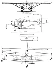 Aft of the CPA 1's semi-cylindrical nose there was a cabin about 5 m (16 ft) long for the observer. It had a forward facing window and a frame that could hold forty 10 kg (22 lb) or ten 50 kg (110 lb) bombs, deployed through ventral openings. It also had an open gun position in the nose and was equipped for vertical and oblique photography. The pilot's cockpit was under the wing trailing edge with a rear-gunner's position close behind, equipped with demountable dual controls, upward-firing machine guns on a flexible mount and a ventral hatch for another gun-mounting covering the lower rear field of fire.[1]