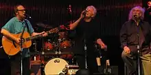 Crosby, Stills & Nash were inducted into the Rock and Roll Hall of Fame and all three members were also inducted for their work in other groups: Crosby for the Byrds; Stills for Buffalo Springfield; and Nash for the Hollies.[6] Neil Young has also been inducted as a solo artist and as a member of Buffalo Springfield but not as a member of CSN. Their final studio album was 1999's Looking Forward, and they remained a performing act until 2015. Crosby died in 2023, ruling out any further full reunions of either lineup.