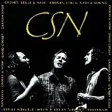 CSN is the eleventh album by Crosby, Stills & Nash, issued on Atlantic Records in 1991, not to be confused with the album of the same name released in 1977. A box set on four compact discs, it features material spanning 1968 through 1990 from their catalogue of recordings as a group in addition to selections from Crosby & Nash, Manassas, and their individual solo albums. It peaked at No. 109 on the Billboard 200, and has been certified platinum by the RIAA.[2] The set is "dedicated to the loving memory of Cass Elliot, without whom most of this music may not have been made." A two-disc distillation of the box was released for other markets later in the year.