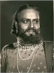 He was noted for portraying mythological and historical roles such as Krishna, Ramadasu, Sarangadhara, Bhavani Sankar, Tukaram and Satyavantha.[4] He also acted as Lord Venkateswara in Sri Venkateswara Mahatyam, one of director P. Pulliah's first successful films.[5] In the 1953 film Devadasu, he portrayed an aged widower zamindar, alongside Savitri, who acts as his wife. His other acclaimed character roles include Sakuni (a character from Mahabharatha) in Mayabazar. His other acclaimed acting credits include Rojulu Marayi, Gruhapravesam,[6] Illarikam, Kanyasulkam and Appu Chesi Pappu Koodu. His directorial credits include the 1939 allegorical melodrama, Jayapradha.[7]