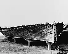 CSS Jackson's remains were raised in two pieces; the 106-foot (32.3 m) stern section in 1962 and the 74-foot (22.6 m) bow section the following year. They were then placed on exhibit at the National Civil War Naval Museum in Columbus.[9] A thick metal white frame outline, indicating the various dimensions of Jackson's original fore and aft deck arrangements and armored casemate, is now erected directly above the hull's wooden remains to simulate for visitors the ironclad's original size and shapes.[10] The ship's fantail, which was stored outside in a pole barn, was partially destroyed in a fire on 1 June 2020.[2]
