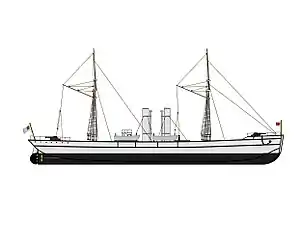 | Propulsion | 2 – 100 h.p steam engines. 2 screws. Mast and sails |
