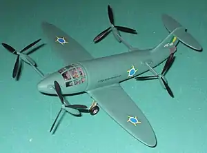Henrich Focke revived the design in the early 1950s on behalf of Brazil's Centro Técnico Aeroespacial (CTA), at the time the air force's technical center, who had contracted him to develop a convertiplane. The Convertiplano was built using the fuselage and wings of a Supermarine Spitfire Mk.XIV, serial RM874, acquired by the Brazilian Air Attaché's office in Brazil. Britain refused to supply the Armstrong Siddeley Double Mamba engine originally selected and the design was altered to accept a mid-mounted 2,200 horsepower (1,600 kW) Wright R-3350 Duplex-Cyclone radial engine, as used in the Lockheed Constellation, instead. This required a redesign of the transmission due to the increased weight and vibration.[1]