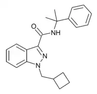CUMYL-CBMINACA (SGT-277) is an indazole-3-carboxamide based synthetic cannabinoid receptor agonist that has been sold as a designer drug,[1] first being identified in Germany in February 2020.[2] It is illegal in Finland.[3]