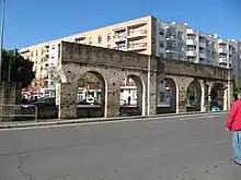 The Caños de Carmona (Pipes of Carmona, Spanish pronunciation: ['kaɲos de kaɾ'mona]) is a Roman aqueduct built during the first century BC to supply water from a spring in the ancient Roman city of Irippo –current Alcalá de Guadaíra– to the ancient Roman city of Hispalis –current Seville–, both in the ancient Roman province of Hispania Ulterior –current Spain–. It was later renovated and partially re-built in the twelfth century by the Almohads and it was fully operational until its demolition in 1912. Some sections survived the demolition and remain standing today.[1][2]