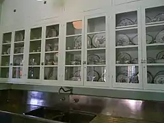 Built in 1926 by Owen Burns,[2] Cà d'Zan is a large Mediterranean revival residense that features an eclectic array of architectural styles including Venetian Gothic, Italian Renaissance, Moorish, and Spanish-inspired elements drawn from different historic periods.[3] Mable and John Ringling had visited Venice and the Venetian Gothic influence in the house is prominently seen in a variety of architectural elements in the decorative program, such as windows with Gothic arches and terra cotta ornament replicating Gothic tracery.