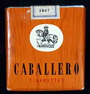 Caballero was founded shortly after World War II. In 1945, the Dutch advertising agency Prad (synonym for "progressive" and "advertising") was formed, and created the famous slogan "Caballero, anders dan andere." ("Caballero, different than the others." in English) in which popular Dutchmen, mainly from the artistic parts of society, promoted the product (Ramses Shaffy, the young Jeroen Krabbé and Henk van Ulsen, who later claimed he never smoked, were a few examples).[1] A song was also created by the Dutch amusement band Leedy Trio, called "Ay-ay-ay! -die Caballero".[2] The cigarettes had a market share of 4% in the 1950s due to the lack of popularity in comparison to the more popular brands Roxy and Lexington at the time, the simple look of the pack (which was associated with people who were "second-class citizens") and because the cigarettes (which were then sold in packs of 20, instead of the current packs of 25) cost 0.80 cents (about €0.36 today) compared to other brands, which cost 1 Dutch guilder. Instead of increasing the price to 1 guilder for 20 cigarettes, there was opted to put 25 cigarettes in one pack, effectively offering more cigarettes for 1 guilder. The move turned out to be a success, increasing Caballero's market share from 4 to 36% in just a few years, also thanks to the effective advertising campaigns with the famous "Mexicaantje" ("Mexican" in English).[1]
