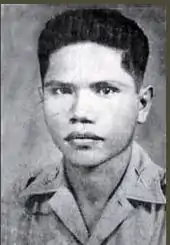 The group reached Balincarin, a barrio (suburb) 5 miles (8.0 km) north of the camp, the following morning.[89] Mucci linked up with Scouts Nellist and Rounsaville to go over the camp reconnaissance from the previous night. The Scouts revealed that the terrain around the camp was flat, which would leave the force exposed before the raid.[89] Mucci also met with USAFFE guerrilla Captain Juan Pajota and his 200 men, whose intimate knowledge of enemy activity, the locals, and the terrain proved crucial.[90] Upon learning that Mucci wanted to push through with the attack that evening, Pajota resisted, insisting that it would be suicide. He revealed that the guerrillas had been watching an estimated 1,000 Japanese soldiers camped out across the Cabu River just a few hundred yards from the prison.[91] Pajota also confirmed reports that as many as 7,000 enemy troops were deployed around Cabanatuan located several miles away.[92] With the invading American forces from the southwest, a Japanese division was withdrawing to the north on a road close to the camp.[93][94] He recommended waiting for the division to pass so that the force would face minimal opposition. After consolidating information from Pajota and the Alamo Scouts about heavy enemy activity in the camp area, Mucci agreed to postpone the raid for 24 hours,[93] and alerted the Sixth Army Headquarters to the development by radio.[95] He directed the Scouts to return to the camp and gain additional intelligence, especially on the strength of the guards and the exact location of the captive soldiers. The Rangers withdrew to Platero, a barrio 2.5 miles (4.0 km) south of Balincarin.[93]