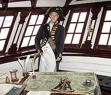 For ships intended to act as flagships, like the former United States Navy aircraft carrier USS Lexington—now a museum ship—the admiral also has a sea cabin (adjacent to the captain's sea cabin) and an in-port cabin, in addition to the captain's cabins.