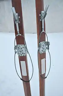Cable bindings, also known as Kandahar bindings or bear-trap bindings, are a type of ski bindings widely used through the middle of the 20th century. It was invented and brand-named after the Kandahar Ski Club in 1929 by ski racer and engineer Guido Reuge.[1] They were replaced in alpine skiing by heel-and-toe "safety bindings" in the mid-1960s.