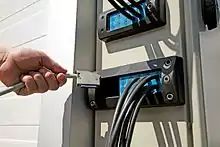 Cable entry systems are used for routing electrical cables, corrugated conduits or pneumatic and hydraulic hoses into switch cabinets, electrical enclosures, control panels and machines or in large heavy-duty vehicles, rolling stock and ships. Possible requirements can be high ingress protection rates[1] or integrated strain relief.[2]