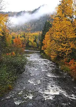 The Rivière Cachée is a tributary of the Jacques-Cartier River, flowing in the administrative region of Capitale-Nationale, in Quebec, Canada.[2] The course of the river crosses the unorganized territory of Lac-Jacques-Cartier in the La Côte-de-Beaupré Regional County Municipality, as well as the township municipality unis de Stoneham-et-Tewkesbury, located in the MRC La Jacques-Cartier Regional County Municipality.