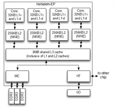 • L3 cache – 8 regions of 4 MB (total 32 MB), local region 6 ns, remote 30 ns, each region 8-way associative, DRAM data array, SRAM tag array[39]