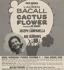 Cactus Flower is a farce by Abe Burrows. It played for years on Broadway before being adapted by I.A.L. Diamond into a 1969 feature film directed by Gene Saks.