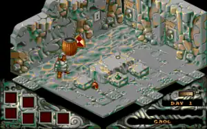 The game is heavily scripted. The isometric objects can react to a variety of other objects; for instance, a poisoned key can be cleaned by dropping a vial of water on it, and potions can be enhanced by the potion booster spell. The game has a wide variety of puzzles requiring items to be found, brought and used in a variety of places. The solutions to these puzzles sometimes require leaps in logic and the game has plenty of secret areas, hidden spells etc. Many of the puzzles also have multiple solutions, and there is often no specific order in which the puzzles on a level must be solved.