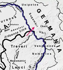 Speculation about the location of the bridges is due to the temporary nature of the construction and the lack of a precise location in Caesar's report. However, diggings in the Andernach-Neuwied area found residual pilings that are considered to be remnants of Caesar's bridges. As an alternative site a place south of Bonn has been mentioned.[1]