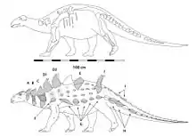 The cladistic analysis by Sellés and Galobart in 2015 supported an ornithischian parentage. Late Campanian to early Maastrichtian ornithischians from Southwestern Europe are restricted to rhabdodontids and the nodosaurid Struthiosaurus. When Sellés and Galobart analyzed the pelvises of Rhabdodon (the largest known rhabdodontid) and Struthiosaurus, they found that Rhabdodon could not have laid eggs as big as Cairanoolithus.[2] On the other hand, even though Struthiosaurus was relatively small, the unique orientation of its ischia would have easily allowed it to lay eggs as large as a 19 cm (7+12 in) cairanoolithid egg.[2] However, interpreting Cairanoolithus as the eggs of a nodosaur does raise the question of why Cairanoolithus or similar eggs have not been found in areas with a greater nodosaur abundance.[2]