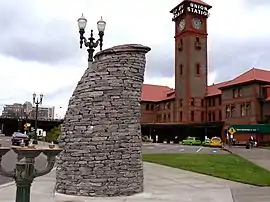 ![]() One of the installation's five stacks in front of Portland Union Station in 2013 | |