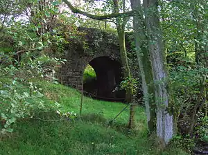 This basic halt opened in 1927[3] or on 24 September 1928[4] and closed on 3 April 1950.[3][4] The nearby miners’ row was owned by the Cairntable Coal Co. and provided homes for workers at their nearby colliery.[5][6]